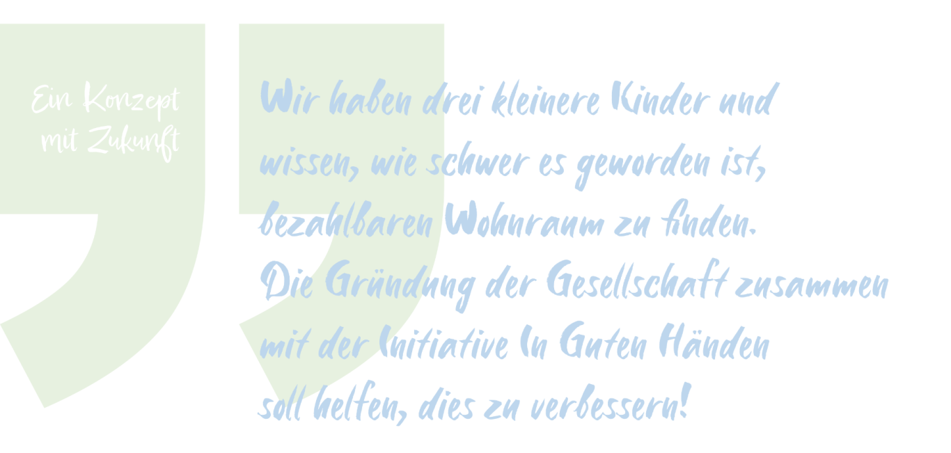 Bei Initiative In Guten Händen setzen wir uns leidenschaftlich dafür ein, für junge Familien mit Kindern ein bezahlbares Zuhause zu finden. Gefällt Ihnen der Gedanke?